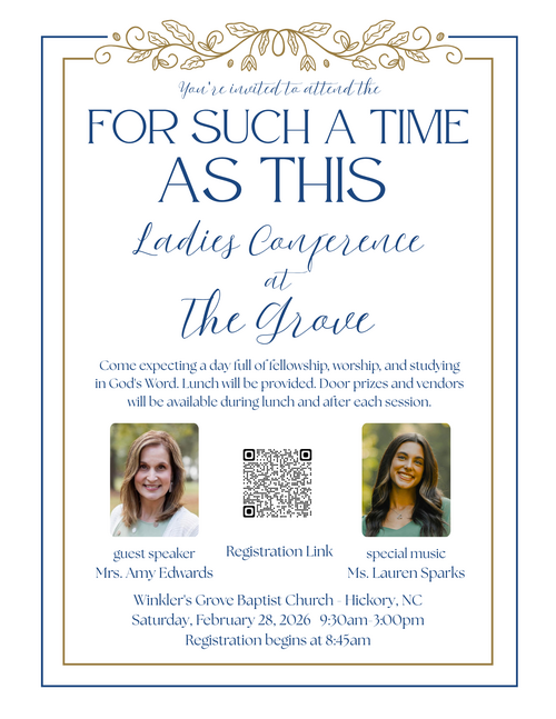 Make plans now to attend the 2026 Ladies Conference at The Grove!!